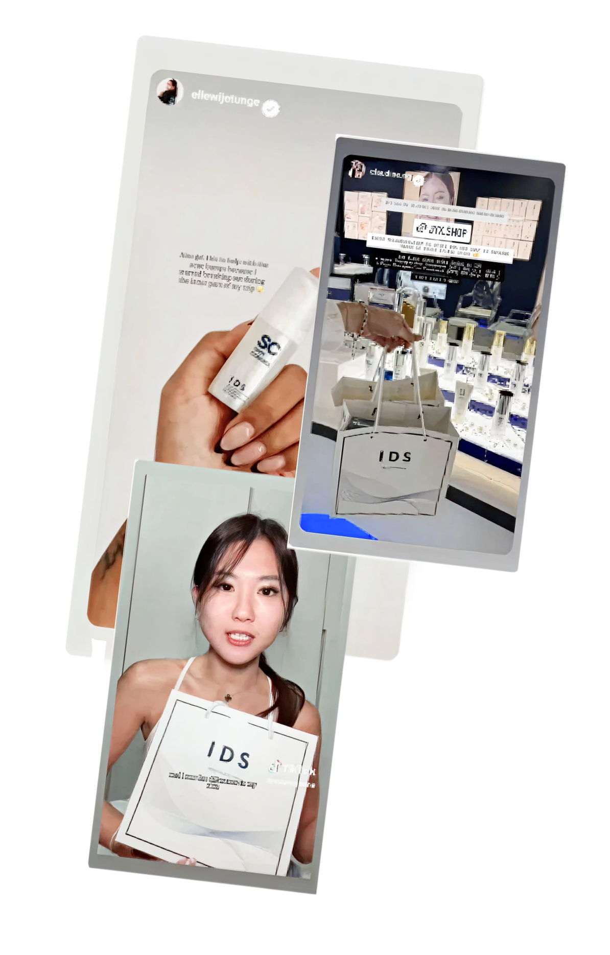 Skincare-related content featuring IDS products, including Reels, TikTok videos, or Instagram Stories. Be creative and showcase your personal style!